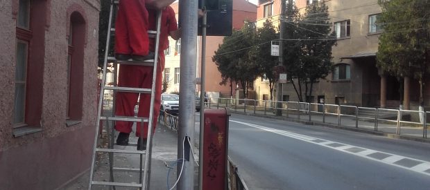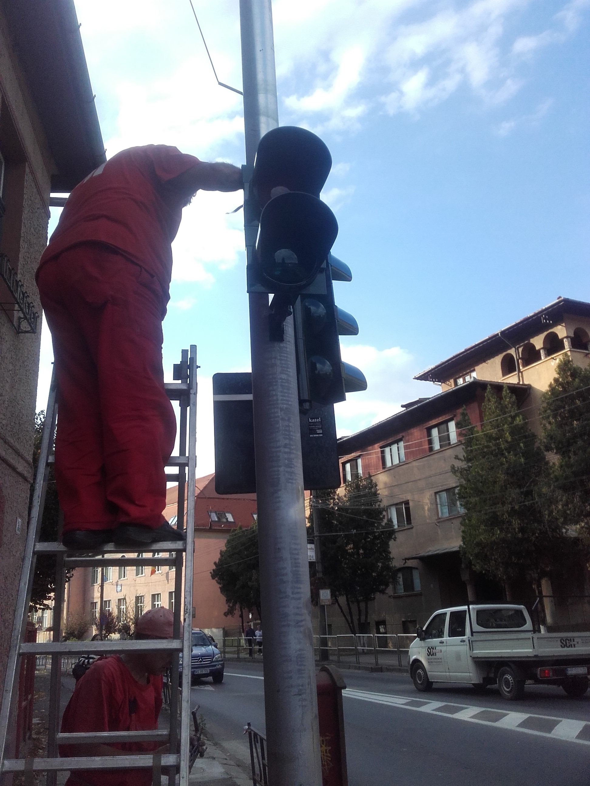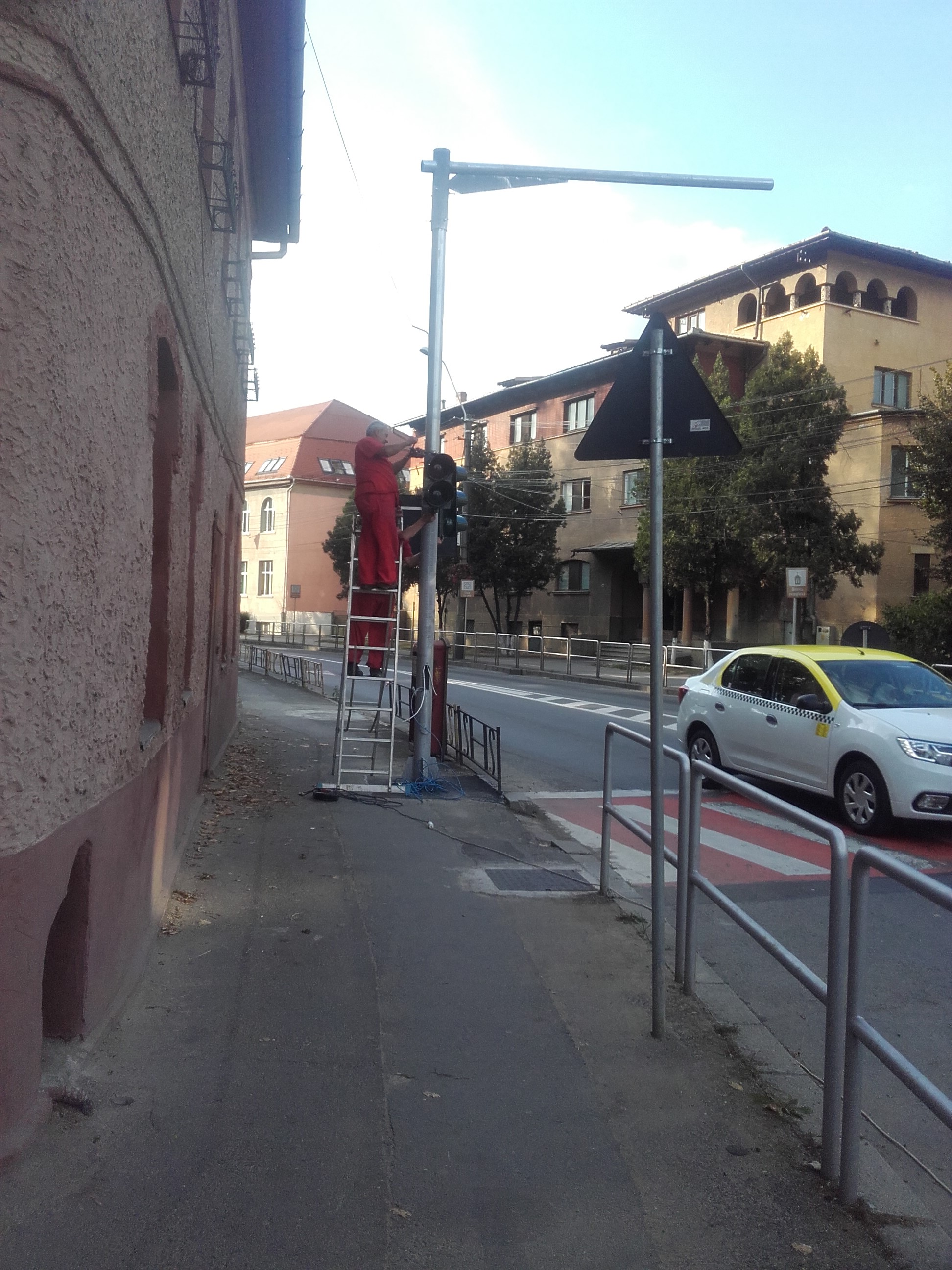 A început montarea corpurilor de semaforizare din sistemul de tip undă verde din Sighișoara!!!