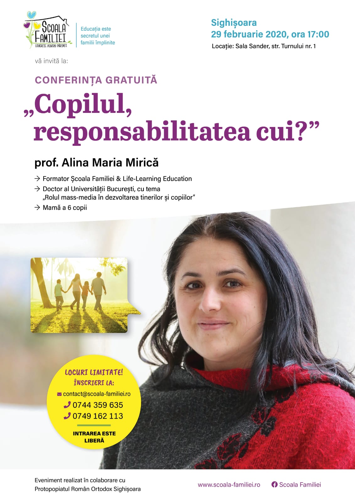 a fost titlul conferinței pe tema educării copilului organizată sâmbătă la Sala Sander de către Asociația Școala Familiei în colaborare cu Parohia ortodoxă Sighișoara VII.