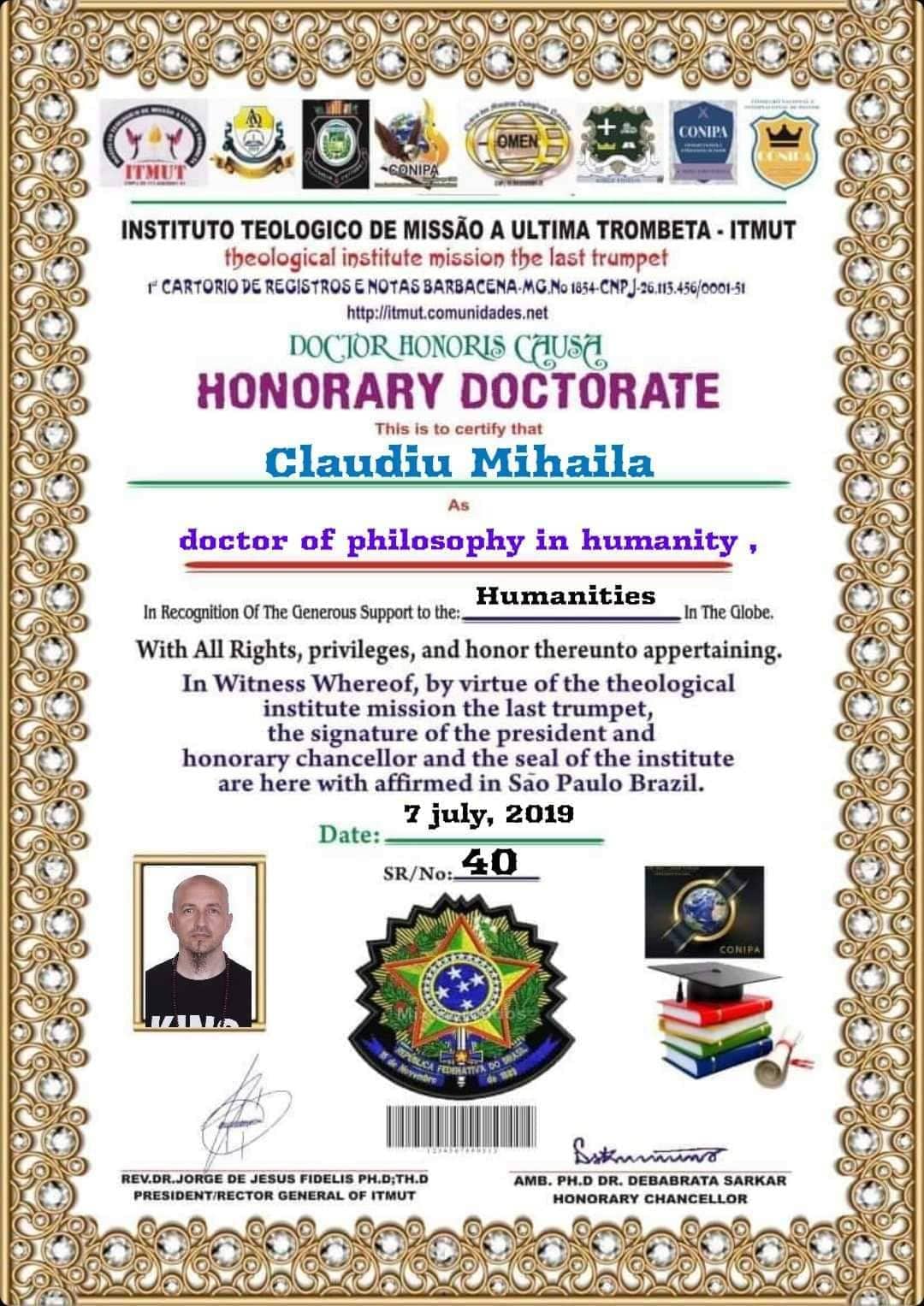 Sportivul sighișorean Claudiu Mihăilă a fost recompensat pentru traiectoria profesională atât în domeniul artelor marțiale cât și pe plan terapeutic si pentru voluntariat . Impreuna cu Fisioterapeuta Nuria González Martinez din Tomelloso (Spania) sportivul sighișorean a fost medaliat cu onorifica Medalia Păcii pentru munca desavarsita in cadrul umanitatii . Premierea a fost realizată de catre Dr. Debrabata Sarkar din Calcuta (India ) și de Presedintele Instututului Teológic Missāo din Brazilia (ITMUT) Dr. Jorge de Jesus.