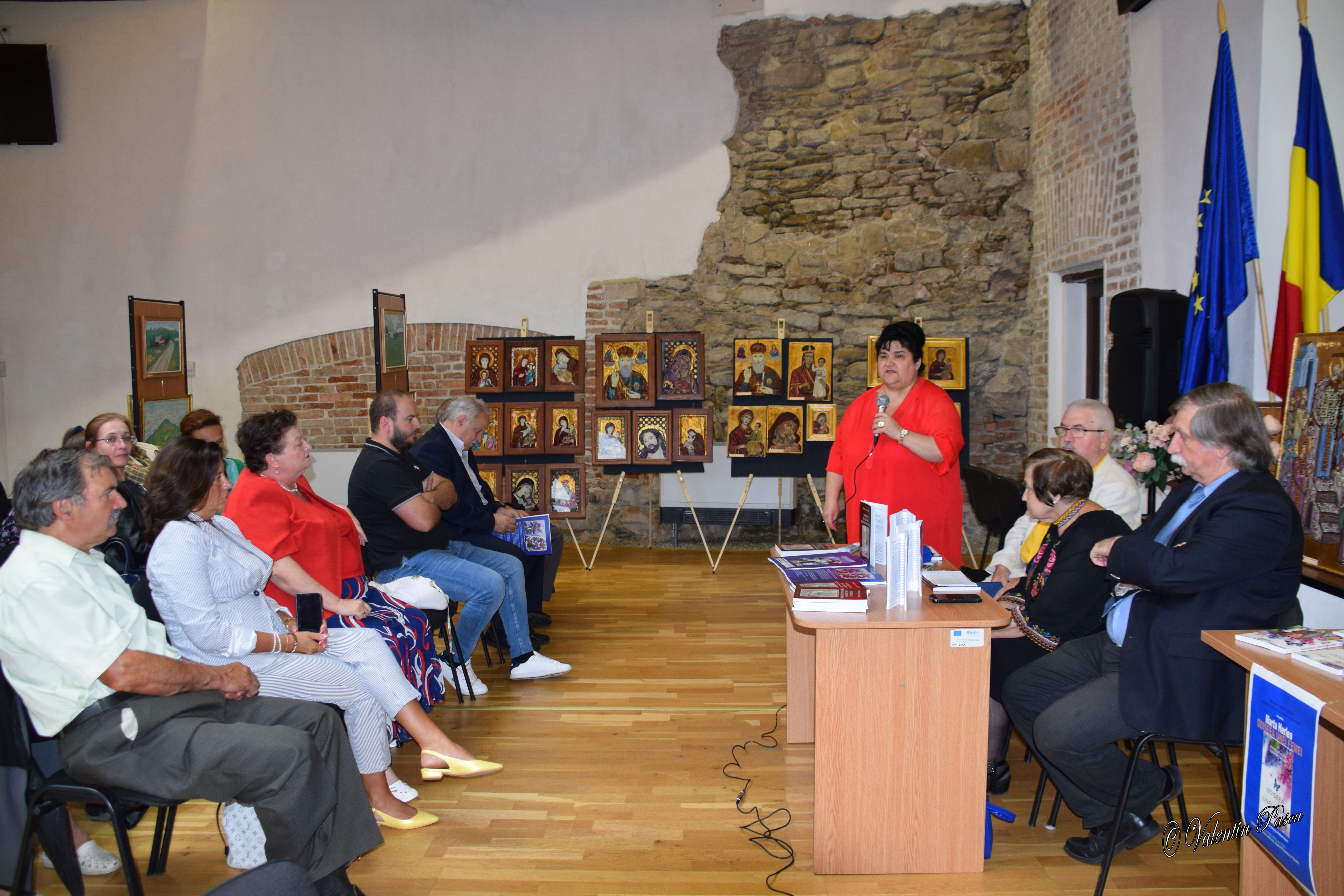 Reuniunea s-a desfășurat ieri după-amiază într-un decor pictural prezentat de artistul MIHAIL GAGEA – Expoziție de Icoane și Artă Laică, după cum ne-a declarat Gabriela Costescu, organizator al întâlnirii. Despre lucrările artistului, au vorbit: prof. Ungureanu Ion, și prof. Valentin Mureșan