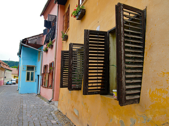 Sighișoara este INCREDIBIL de colorată. Este ca și cum o cutie de creioane colorate în culori tropicale ar fi explodat deasupra orașului.