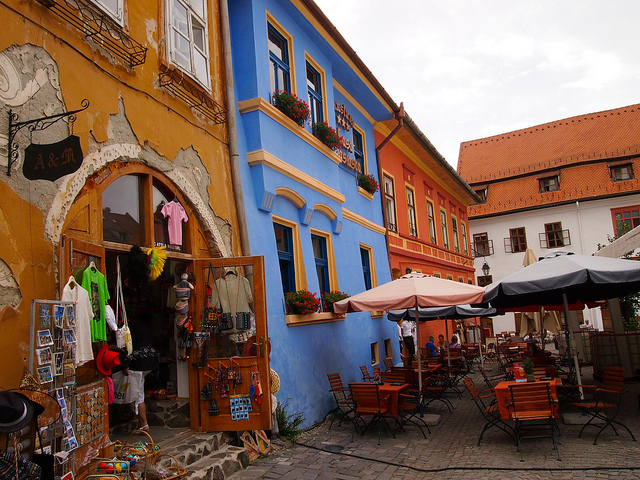Sighișoara ESTE un oraș turistic. Asta înseamnă că vei găsi o grămadă de magazine cu suveniruri; la toate se vând tricouri cu Dracula și magneți. Dacă știi să cauți, poți găsi obiecte unice sculptate în lemn sau făcute din ceramică. Vă recomand International Cafe, unde veți găsi o grămadă de obiecte interesante.”